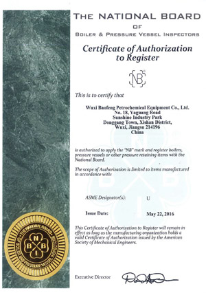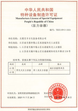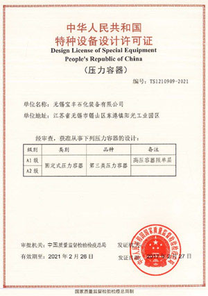 本公司具有A1/A2级压力容器的设计与制造许可证