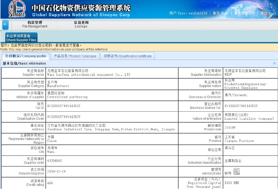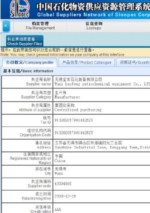 中国石化全球供应商资格